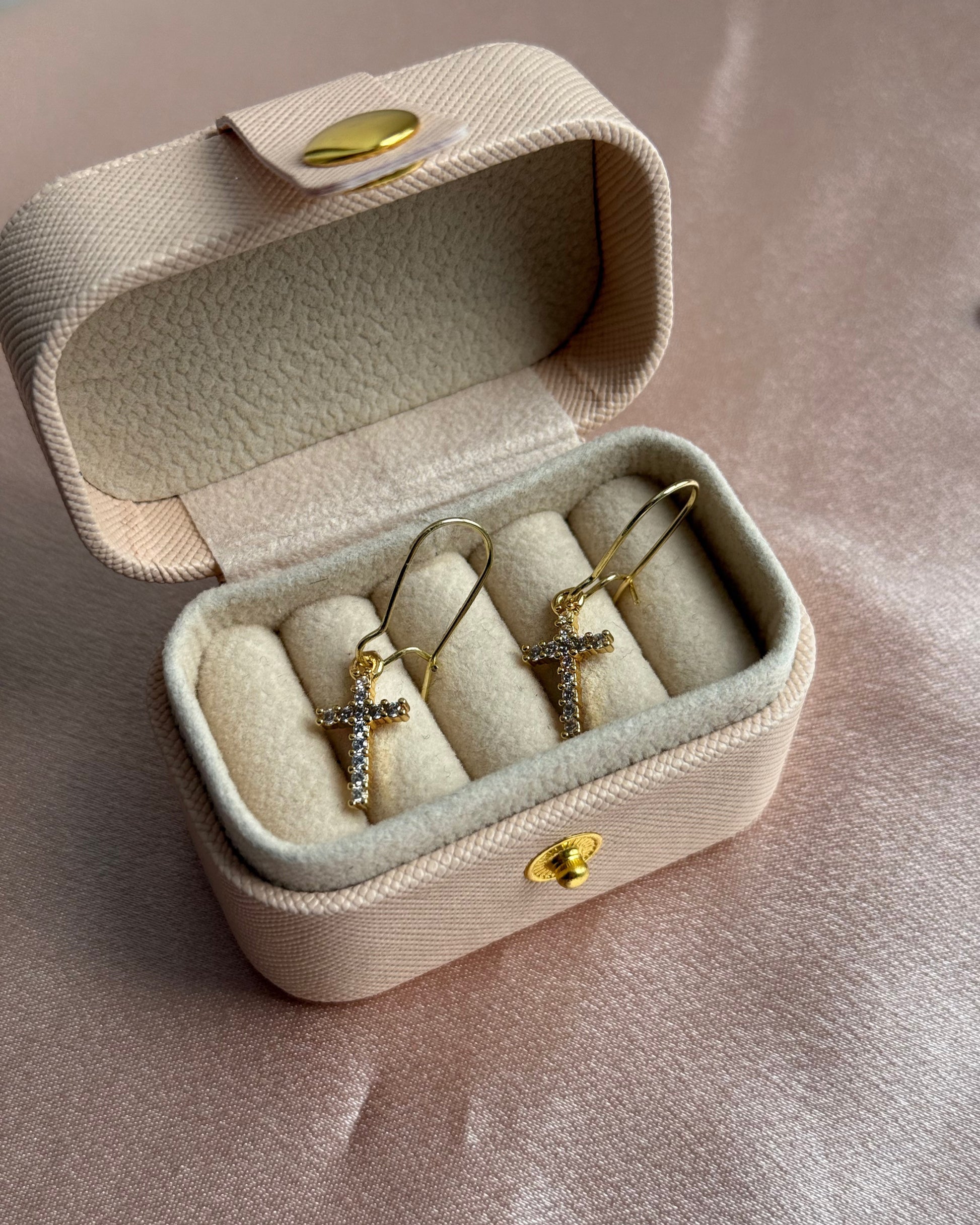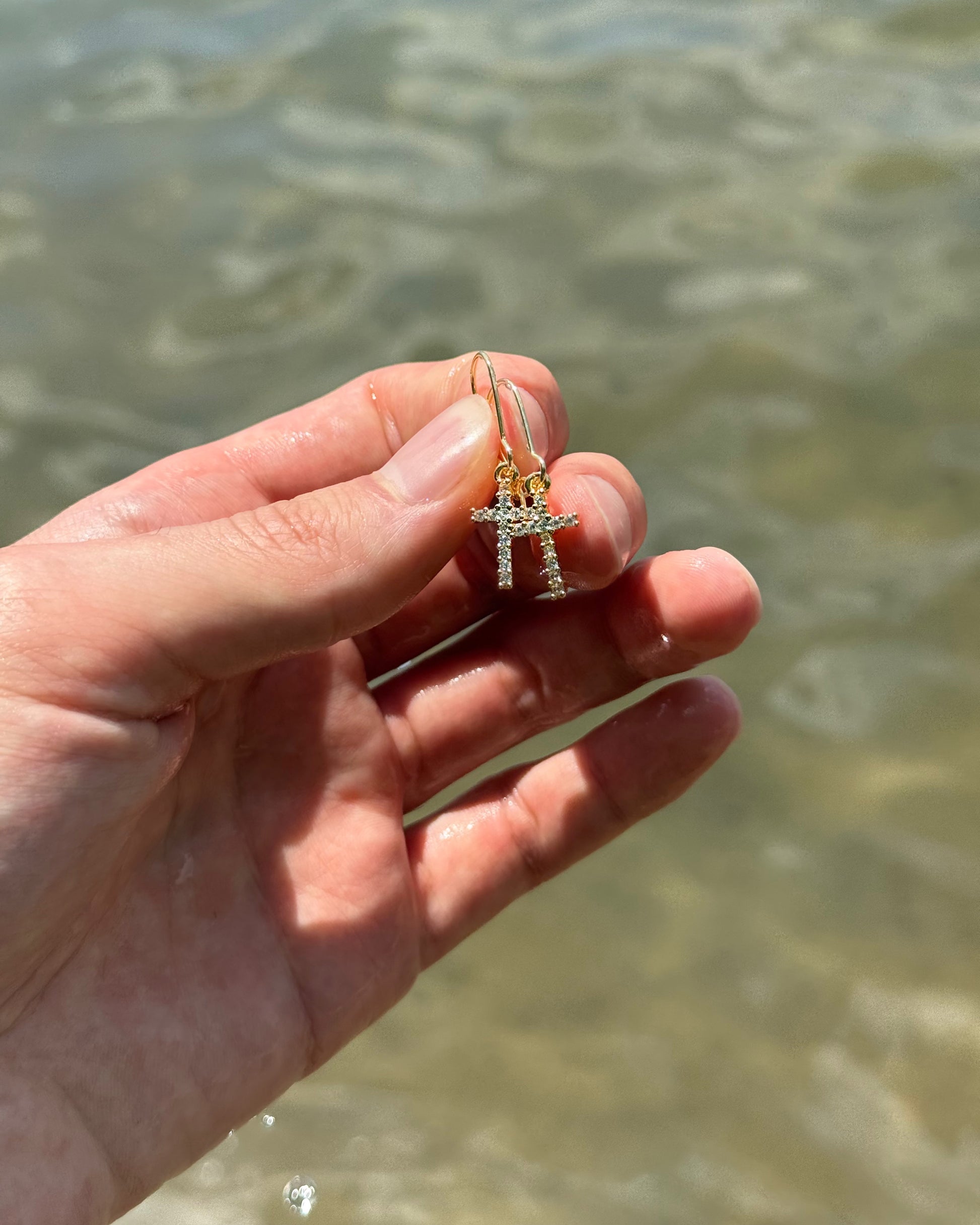 Dreamy Sundays erinnert an Kirchenglocken in der Ferne & diese besondere Ruhe, die nur der Sonntag kennt. Die pavébesetzten Kreuzanhänger sind 14k vergoldet und hängen an hochwertigen 18k gold filled Hoops. Die Ohrringe sind leicht und angenehm zu tragen.